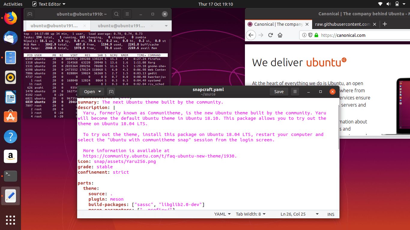 Ubuntu 19.10 采用最新的GNOME 3.34,是迄今最快的版本,即便在较旧的硬件上这些重大的性能改善使得系统操作反应更快、体验更顺滑。拖动图标即可轻松地管理应用到分类的文件夹,同时用户可根据自己的偏好选择亮或暗的Yaru主题,改善视觉体验。